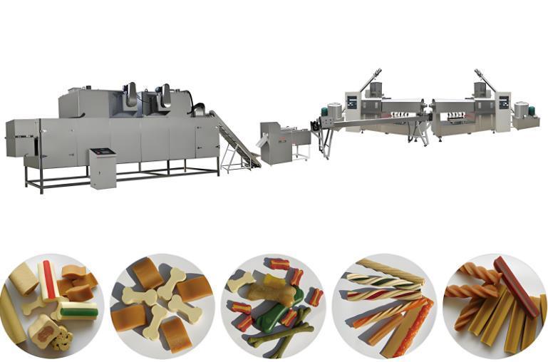 - কুকুর চিবানোর খাদ্য মেশিন কুকুর চিবানোর স্ন্যাকস এবং আধা আর্দ্র পোষা খাবার তৈরি করতে পারে।